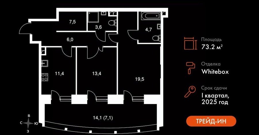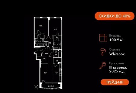 Скидки распространяются на широкий пул двух-, трехкомнатных квартир при 100% оплате и ипотеке. (Акция действует до 14.08.2025 г. Количество квартир по акции ограничено).