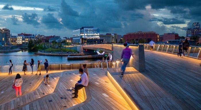 Просыпаясь вы видите, как река играет бликами в первых солнечных лучах, а с наступлением сумерек река превращается в зеркало, отражающее огни города.