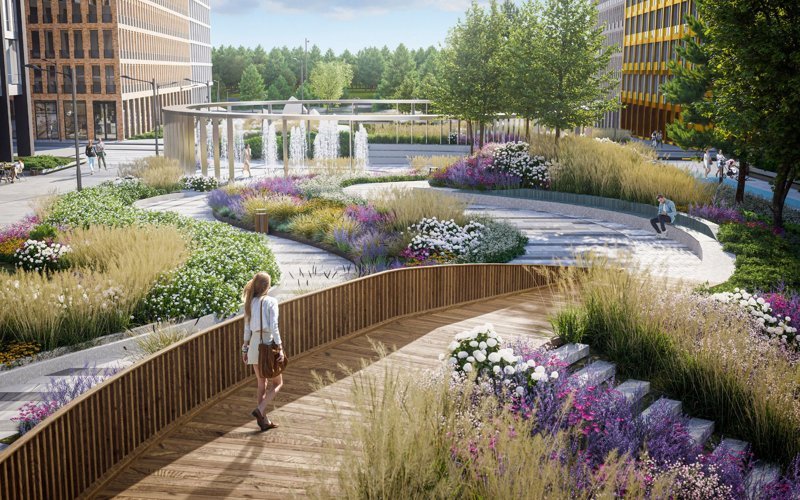 Весь район спроектирован по принципу 15‑минутной доступности: к любому объекту инфраструктуры вас приведет продуманный маршрут. Этот принцип соблюдается на каждом этапе строительства.